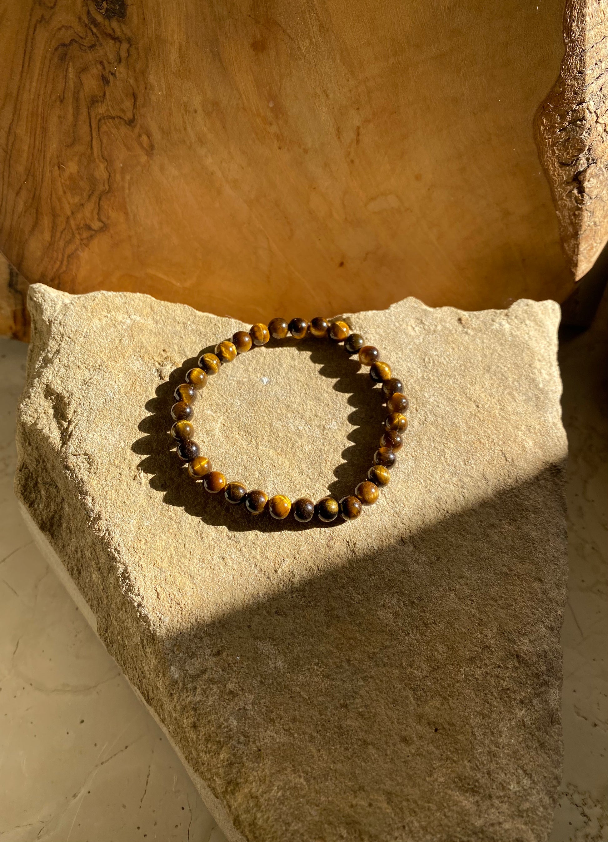 This bracelet is made with warm earth colored tiger’s eye beads.